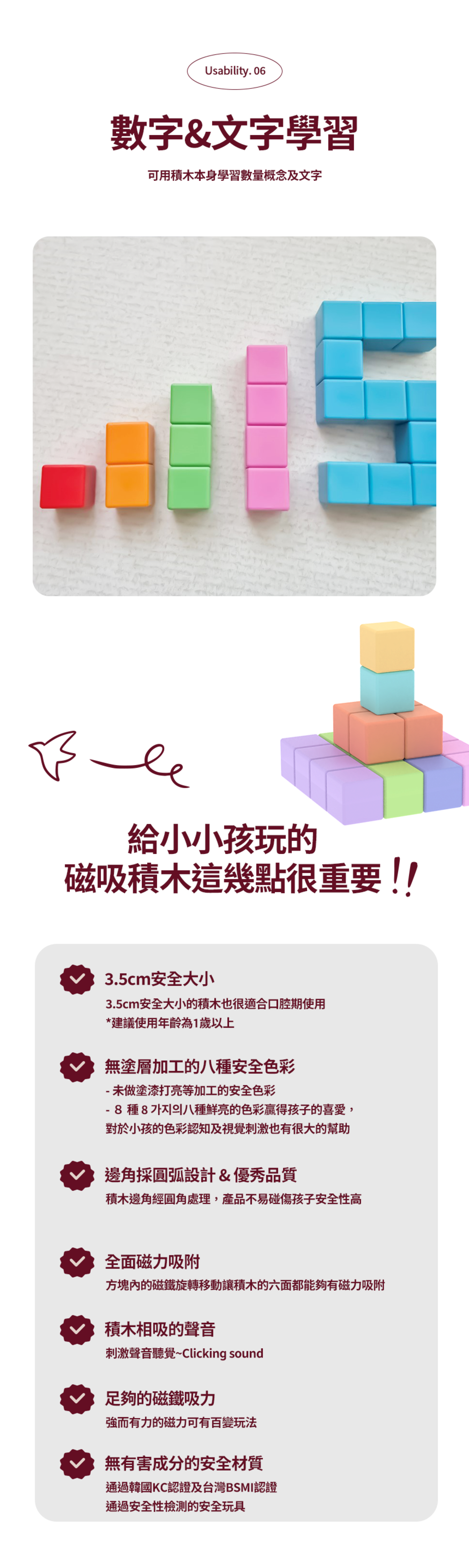 ◦ 有助於孩子小肌肉操作、手眼協調、創造力、專注力、空間認知、數量數學概念、色彩覺察