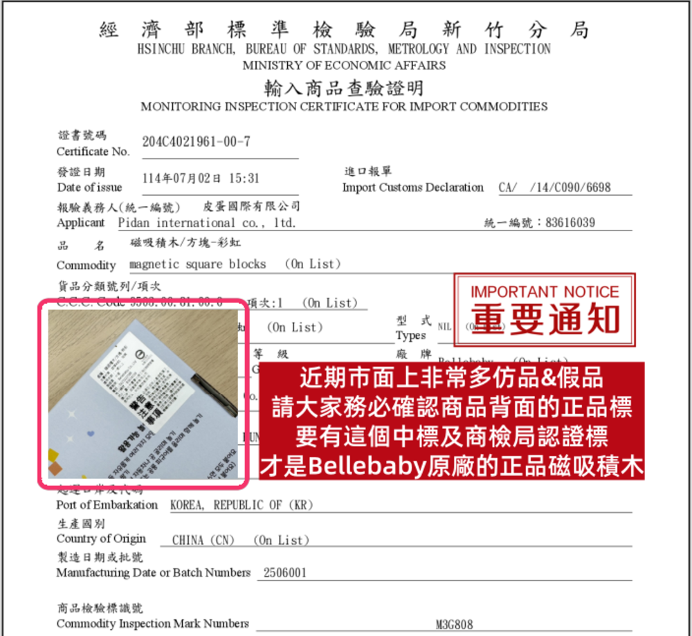 ◦ 安全認證未檢測出有害成分的安全材質