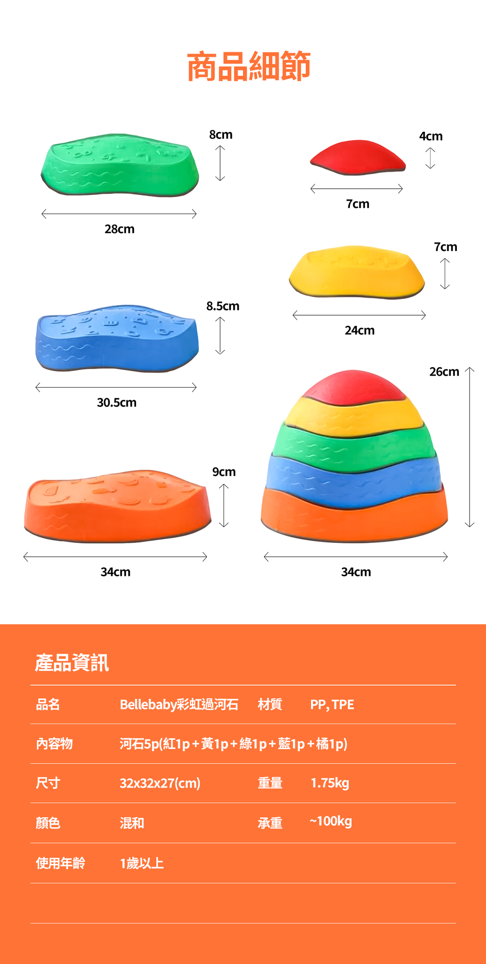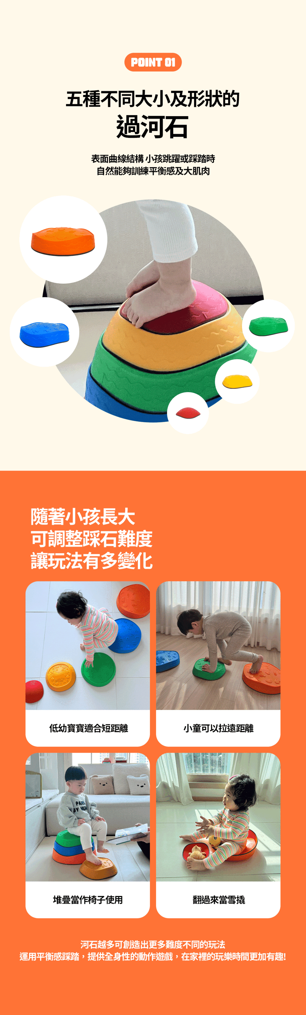 ◦ 五個不同顏色及大小河石為兒童感覺統合訓練器材