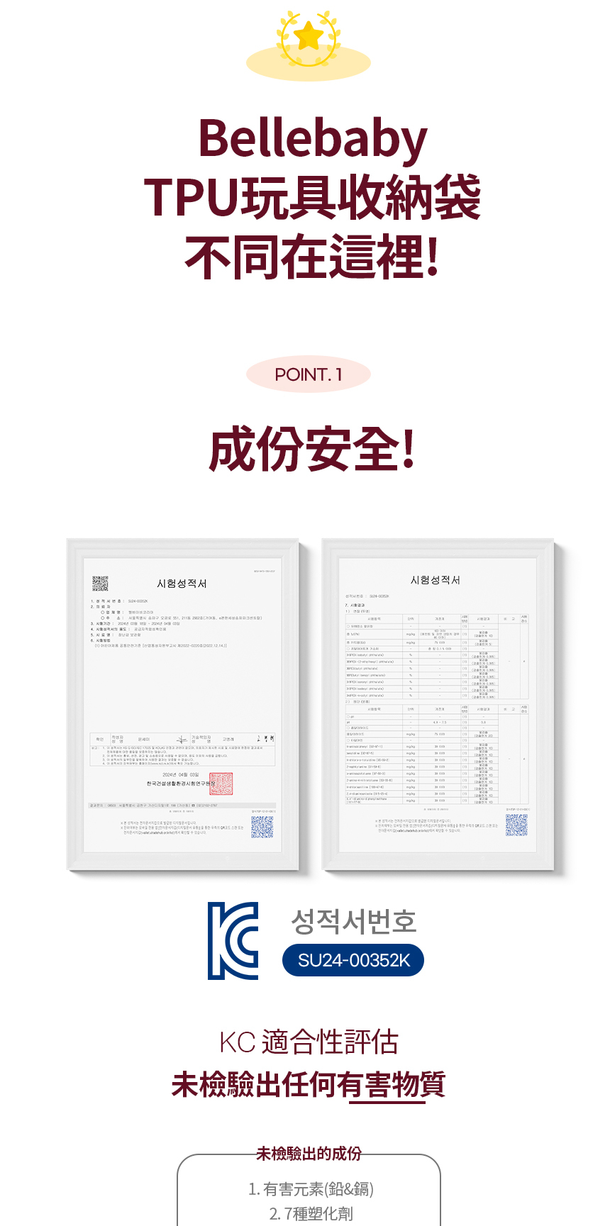 ◦ 未檢測出所有有害物質(鉛、鎘、7種塑化劑、25種有機化學物質)