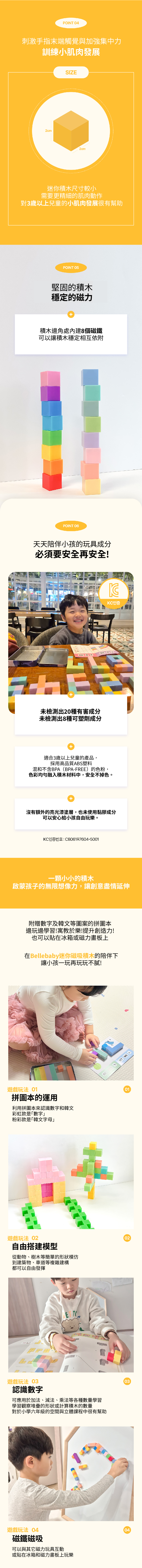 ◦ 有助於孩子小肌肉操作、手眼協調、創造力、專注力、空間認知、數量數學概念、色彩覺察