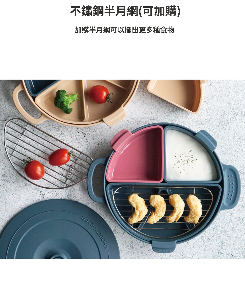 ◦ 可使用於微波爐、烤箱、氣炸鍋、洗碗機、熱水消毒及冷凍保存