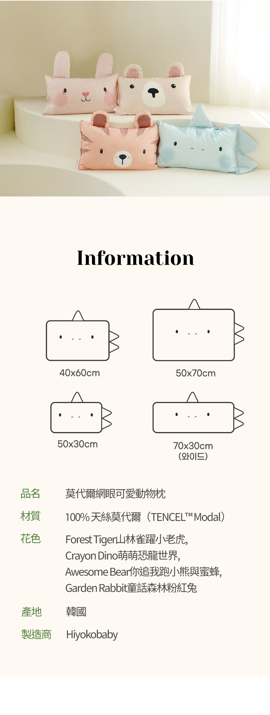 Hiyokobaby I 莫代爾網眼可愛動物枕(寬大60*40)