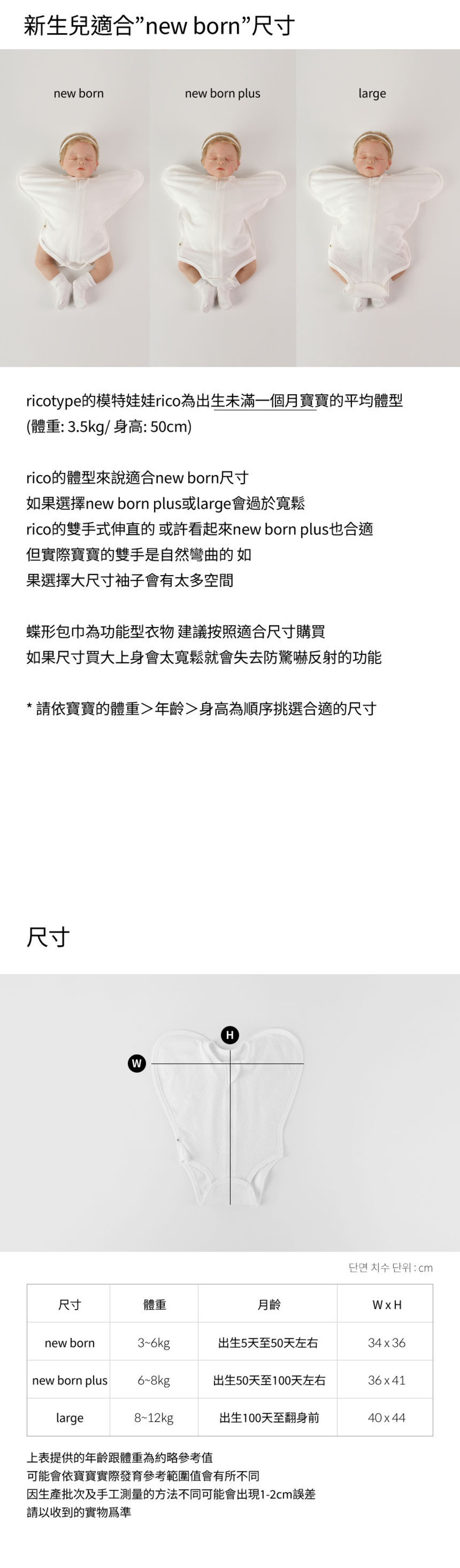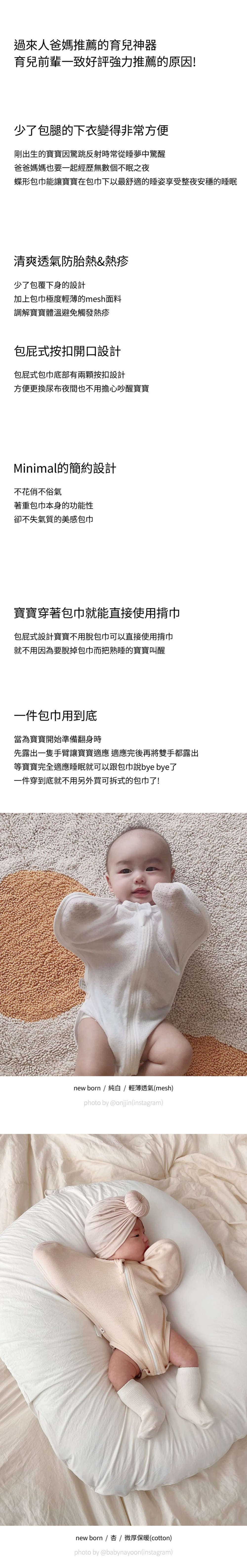 Ricotype I 包屁型蝶型包巾 袖子拉鍊款 輕薄透氣 Swaddlecut™ - Openable ver. mesh
