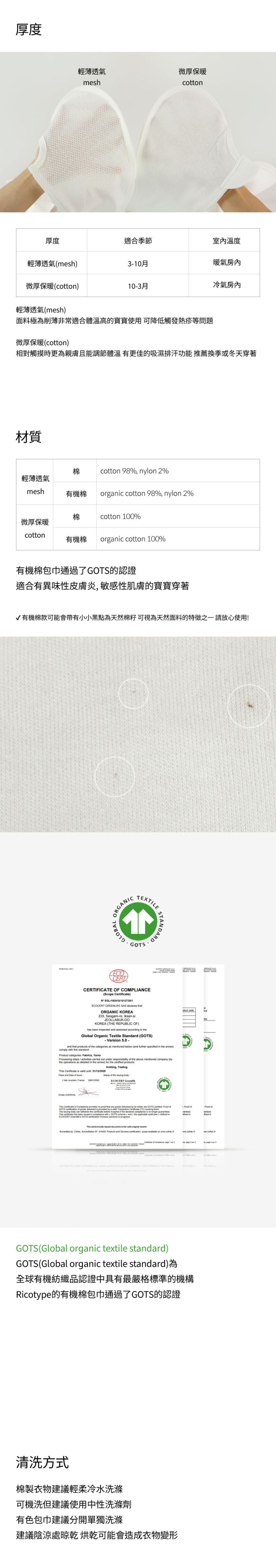 ◦ 厚度: 輕薄透氣(mesh) & 微厚保暖(cotton)