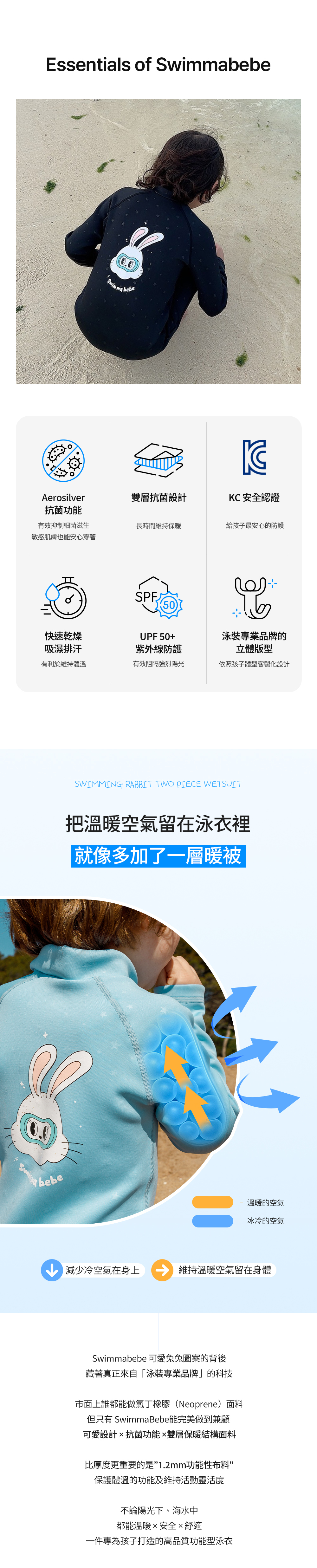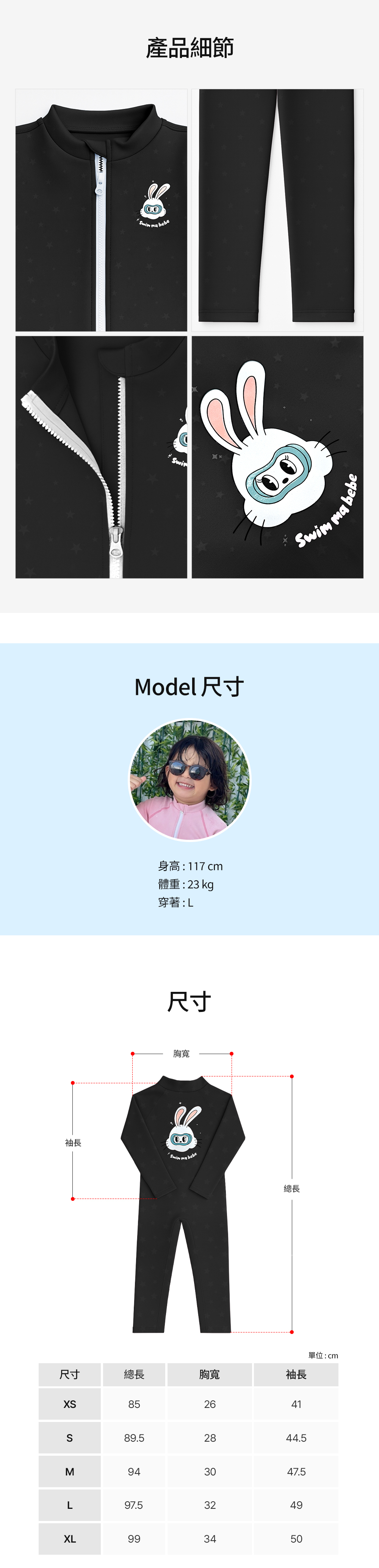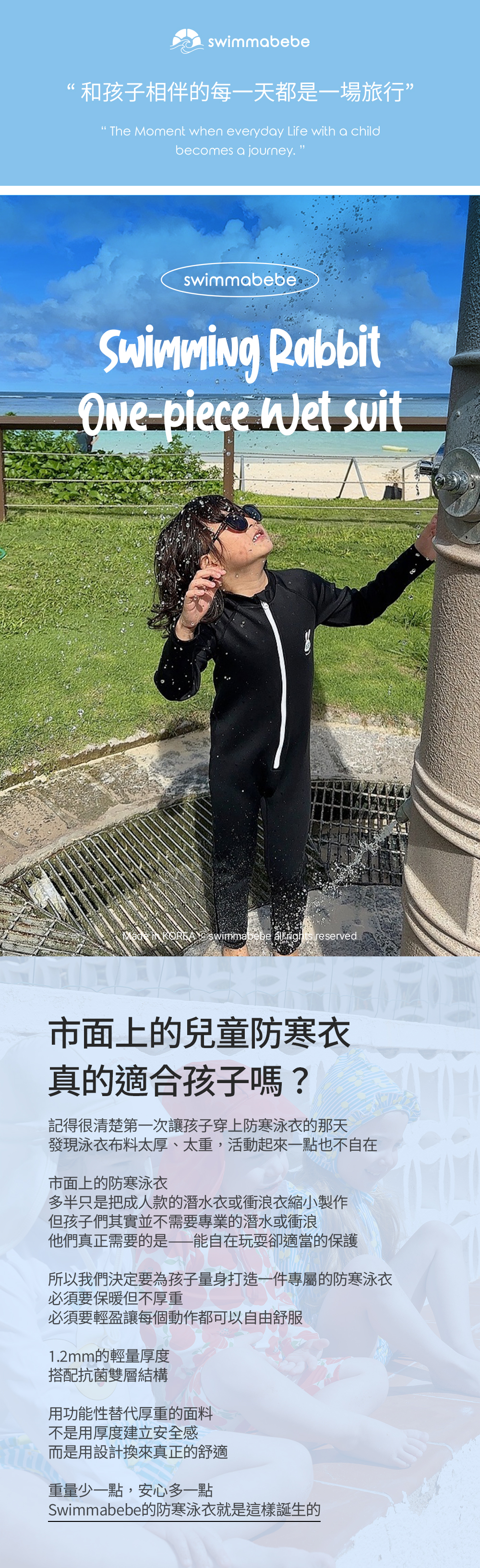 Swimmabebe | 兒童款游泳兔防寒連身泳衣-黑